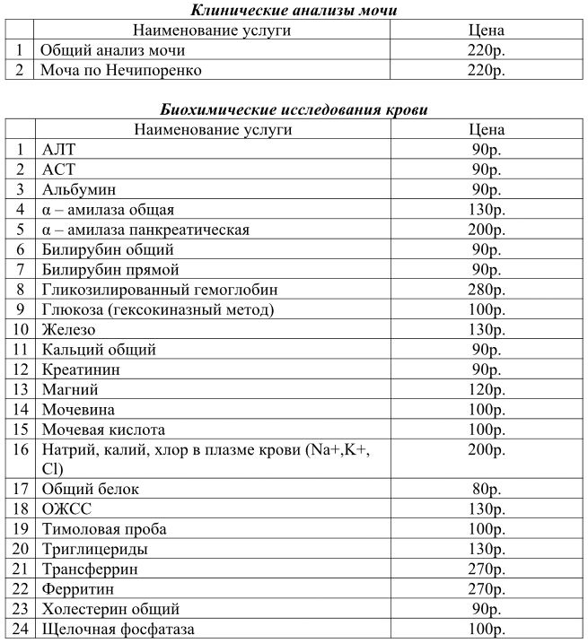 УСЛУГИ И ЦЕНЫ